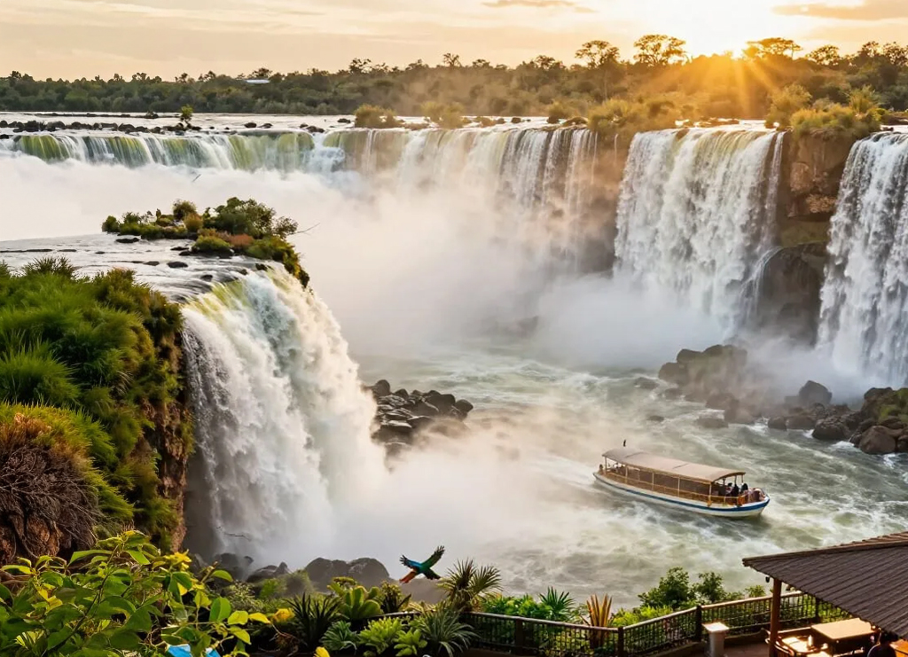 Enjoy a private full-day experience at the spectacular Iguazu Falls (Brazilian side). The tour includes panoramic views of the falls, an exciting boat trip, and a visit to the famous Bird Park.